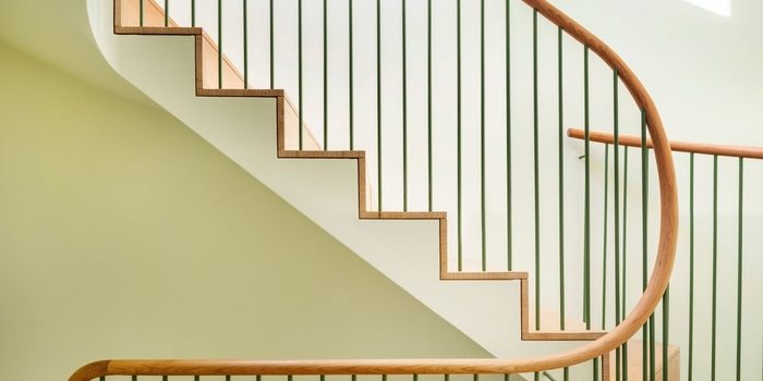 Cherrywood is the other chief element employed around the house. The natural, reddish brown material is represented in the living room floors, the upper stairs, and the winding banister. “It’s quite a rich contrast to the terrazzo because obviously we didn’t want to make it feel too hard or too cold,” says Christian. “We got the cherry to try to balance out the terrazzo with something much softer and warmer.”