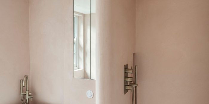 Each bedroom is minimal and directly accessed off the spiral staircase, which Tyeth and Christian thought would flow more effortlessly than multiple corridors. The two bathrooms are constructed from polished plaster, an Italian material the client insisted upon. Though Christian was and remains worried about its durability, it adds a dreamy glamour that seems to permeate the home.