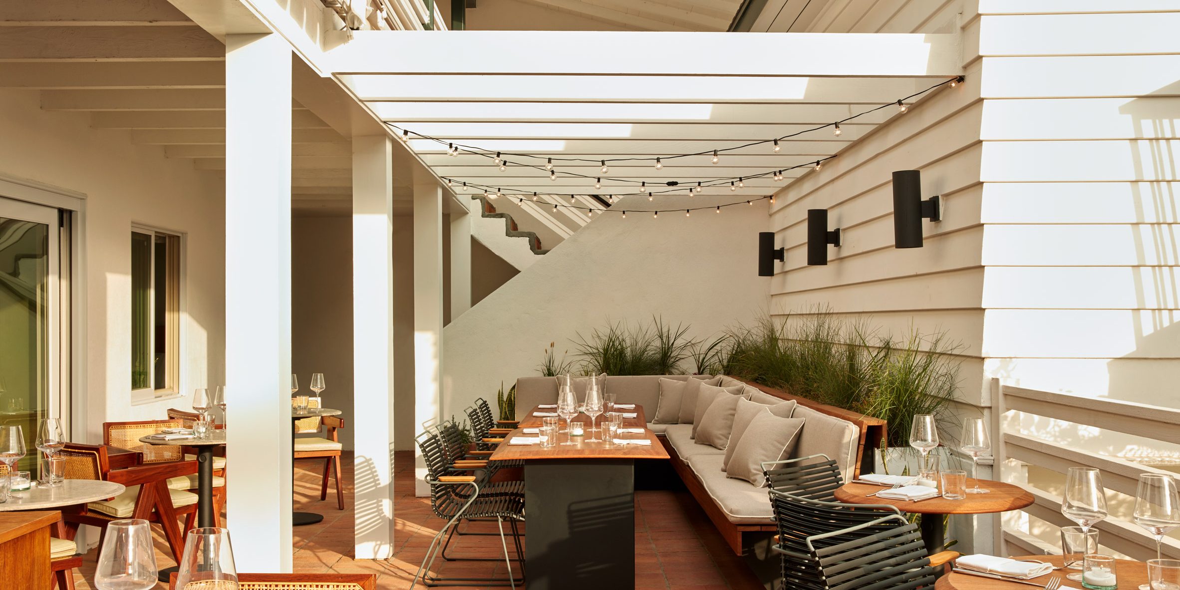 Hotel Joaquin’s restaurant, The Bar, which serves French Mediterranean cuisine, informed the aesthetic, which Auric Road describes as an “homage to the laid-back elegance of the California and Mediterranean coastlines”.