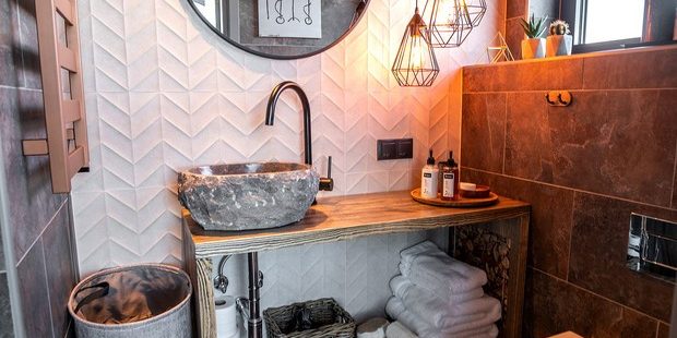 One of the most striking elements of the interior is the hexagonal tiles on the walls and floors. The job was challenging and difficult to implement as each tile is hand cut into the wood.
